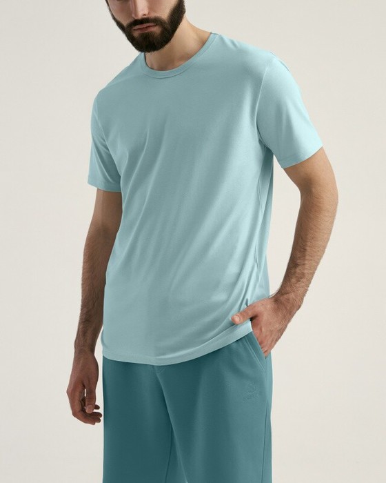 Классическая мужская футболка прямого силуэта. Горловина окантована рибаной