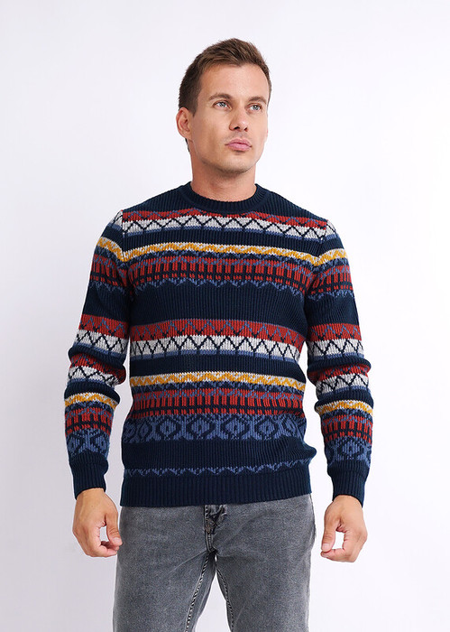 Мужской вязаный джемпер с круглым вырезом горловины и длинным рукавом. Джемпер со смесовым составом, в котором, несомненно, будет комфортно в течение всего дня. Модель отличается благодаря яркому рисунку со смелым сочетанием цветов в скандинавском стиле.