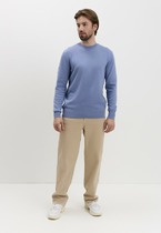 Джемпер прямого силуэта, длинный рукав, круглый вырез горловины обработан обтачкой. Изделие выполнено из натурального полотна с добавлением эластана для удобства ношения.