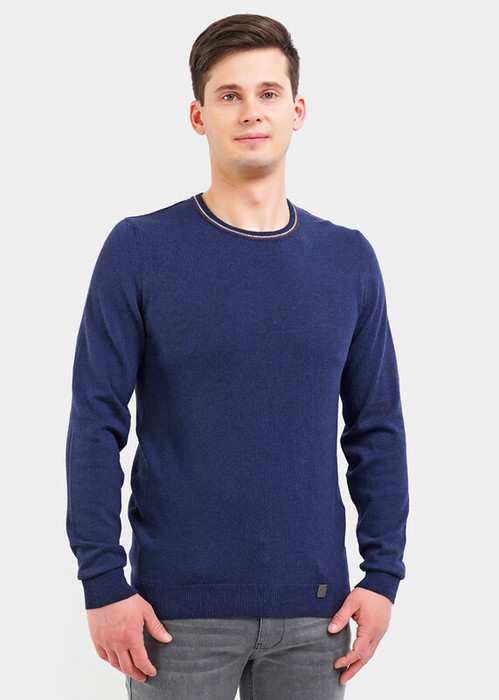 Джемпер прямого силуэта с круглым вырезом горловины. По бейке горловины полосы контрастного цвета. По спинке стильная обтачка контрастного цвета из поплина . Изделие выполнено из натуральной пряжи. Хорошо смотрится с джинсами или брюками.