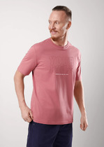 Футболка мужская из дышащего хлопкового полотна. Модель с круглым вырезом горловины, планкой и коротким втачным рукавом. Благодаря небольшому шрифтовому принту и фирменной фурнитуре образ выглядит завершенным.