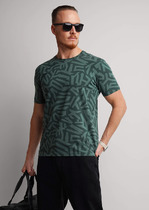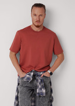 Базовая однотонная футболка стандартного объема с круглой горловиной, втачным рукавом из хлопкового полотна с добавлением эластана. Является неотъемлемой частью мужского гардероба.