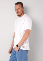 Молодёжная футболка свободного кроя с округлой горловиной и имиджевой фурнитурой. Модель подойдет к джинсам или шортам. В данной футболке можно отправиться на прогулку с друзьями.
