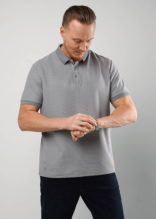Мужская базовая футболка-поло. Модель дополнена вязанными отделками, фирменной фурнитурой и вышивкой. Изделие отлично сочетается с любыми брюками или джинсами.