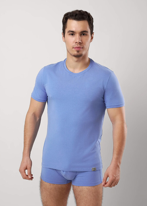 Стильная мужская футболка из модала с коротким рукавом и имиджевой нашивкой.