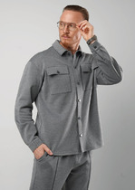 Мужская куртка-рубашка выполнена из фактурного трикотажного полотна, свободного силуэта с отложным воротником и застежкой на пуговицы. Модель дополнена нагрудными карманами. По низу рукава манжета. Отлично подойдет для работы и учебы.