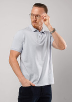 Современная  мужское поло из хлопкового пике с эластаном. Модель с коротким втачным рукавом. Дополнена вязаным принтованным воротником иманжетами, а так же фирменной фурнитурой. Хороший вариант для встреч сдрузьями и прогулок.