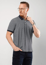 Мужское поло с коротким рукавом, планкой на пуговицах и вязаными отделками. Изделие выполнено из трикотажного фактурного полотна. Дополнена имиджевой фурнитурой. Стильная модель для повседневных и полуформальных образов.