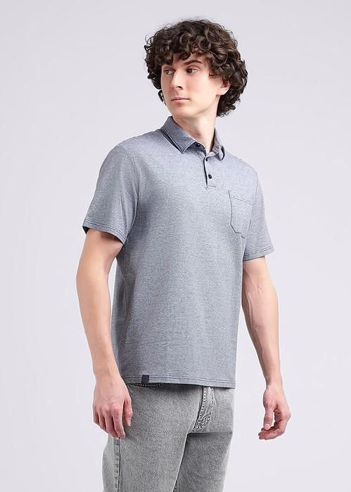 Футболка-поло мужское из хлопкового полотна с добавлением эластана, с воротником, функциональной планкой на пуговицы и карманом. Изделие выгодно подчеркивают лаконичная нашивка по низу изделия. Хорошее дополнение к брюкам или джинсам.