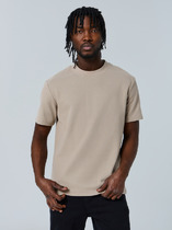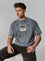 Фуфайка с коротким рукавом среднего объема, круглым вырезом горловины, которая оформлена обтачкой из рибаны.