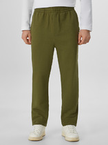На передних половинках обработаны карманы в боковых швах, подкладка кармана из основного полотна. Нижние срезы брюк обработаны швом вподгибку на 2х игольной плоскошовной машине.