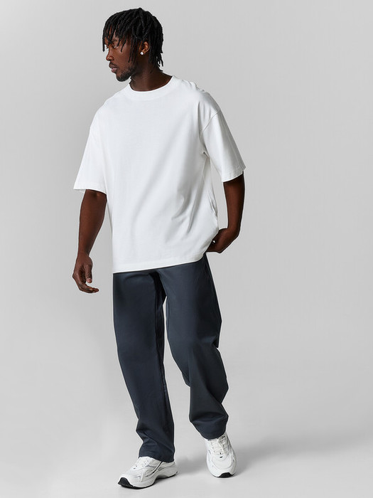 На деталях переда карманы с отрезным бочком. В среднем шве имитация гульфика. На уровне колен от боковых швов заложены по одной складке.