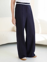 Брюки изготовлены из трикотажного полотна футер. Брюки прямые с высокой посадкой. Пояс отрезной из рибаны с эластичной тесьмой внутри. В передней части пояса с лицевой стороны пробиты петли и втянут шнур. Шов втачивания пояса распошит. Спереди обработаны карманы хулиганы. По низу брюк отрезные манжеты из рибаны.