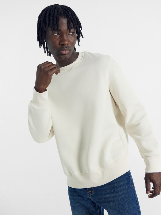 Джемпер из трикотажного футера с теплым подчесом. Длина до середины бедер, силуэт прямой. Линия плеча спущена. Рукава длинные, с притачными манжетами.  Горловина круглой формы. Отличный выриант для стильных городских образов!