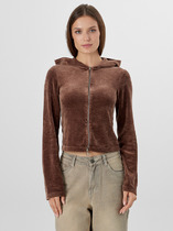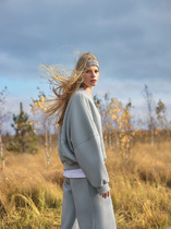 Худи изготовлен из трикотажного полотна футер 3х нитка с подчесом. Худи свободного силуэта. Горловина круглой формы с капюшоном. Капюшон со средним швом на подкладке из кулирки. С внешней стороны пробиты петли и втянут шнур (8КXW-1) с завязвнными концами. Рукава втачные, длинные. Плечо спущено, пройма углублена. По низу рукава отрезная манжета из рибаны. По плечу отрезная декоративная деталь. По низу худи отрезной пояс из рибаны. Шов втачивания обтачки и рукава, плечевые, шов притачивания пояса распошиты.