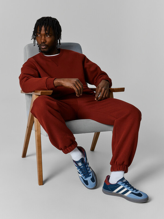 Костюм, состоящий из джемпера и джоггеров, создан для повседневного комфорта. Джемпер свободного кроя с мягким внутренним начесом отлично согревает. Круглая горловина, низ изделия и манжеты рукавов отделаны эластичной резинкой-рибаной для удобной посадки. Спереди у горловины настрочен декоративный треугольник из той же резинки. Швы выполнены аккуратно и не ощущаются при носке.