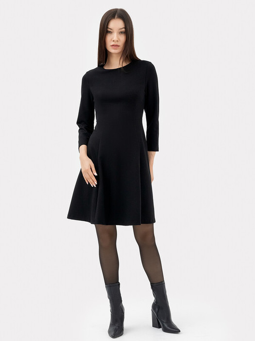 Платье длиной выше колена. Подгибка низа и рукава сделана потайным стежком.