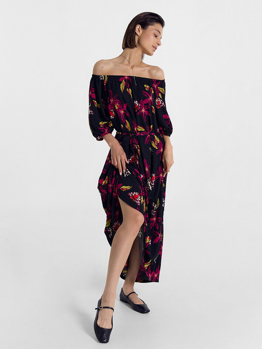 Вырез кармен, верхний срез с внутренней эластичной тесьмой, присборен.