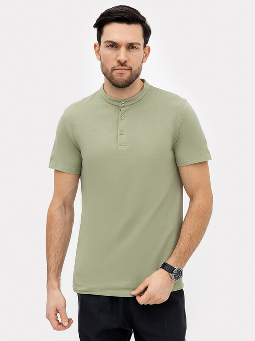 Стильная футболка поло с оригинальным воротником-стойкой и удобной застежкой на 3 пуговицы. Благодаря лаконичному дизайну, прямому силуэту и комфортной длине до середины бедер она наверняка станет любимой в гардеробе, ведь отлично подходит практически ко всему.