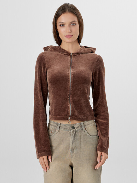 Толстовка полуприлегающего силуэта, укороченная. Горловина круглой формы с капюшоном. Капюшон со средним швом, на подкладке из кулирки. Шов втачивания капюшона и притачивания молнии закрыт тесьмой хб. Центральная застежка на тесьму-молнию. Рукава втачные длинные.