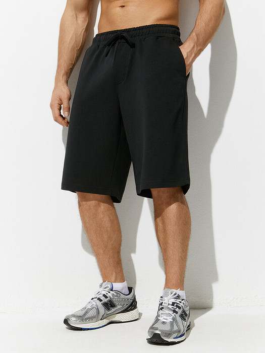 Мужские свободные шорты средней длины с боковыми карманами и поясом на резинке с кулиской.