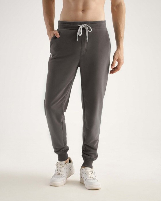 Мужские брюки, джоггеры с манжетами. Пояс из двух деталей, внутри резинка, передняя часть из основной ткани, задняя из кашкорсе. По поясу отстрочка, петли,шнур. Боковые карманы, боковые швы отстрочены. Накладной карман на правой задней половинке брюк.