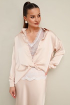 Блузка выполнена из премиальной вискозы и лиоцелла. На спинке изделия фирменный логотип бренда. Застежка на пуговицы из натурального перламутра. Приятная на ощупь ткань охлаждает кожу в жаркую погоду. Отлично впишется в нестрогий офисный дресс-код или в расслабленном повседневном образе с джинсами.