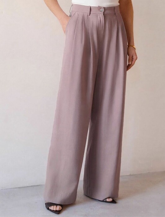 22.03 Vilatte Брюки палаццо с защипами из плотного лиоцелла D24.313 зефирно-роз