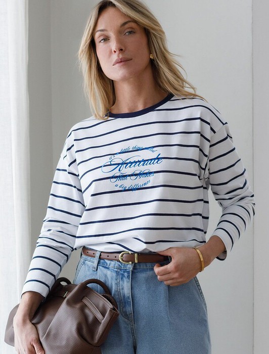 Совместные покупки Тюмень Женская одежда Джемперы, свитеры, водолазки — 22.03 Vilatte Лонгслив с принтом из премиального хлопка с эластаном D49.148 бел