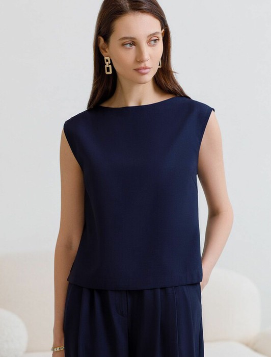 Изысканный топ темно-синего цвета с элегантным вырезом-лодочкой. Лиоцелл это более дорогой и экологичный вариант вискозы, очень прочный и шелковистый. Ткань отличается от регулярной коллекции из лиоцелла - она содержит еще больше лиоцелла (92%), благодаря чему имеет более нежную шелковистую фактуру. Вырез лодочка придает топу утонченность, а небольшие разрезы по бокам добавляют легкости. Простой прямой крой в сочетании с интересными деталями создает стильную и в то же время комфортную вещь. Топ средней длины подойдет для любительниц базовой одежды, которые хотят деликатно повысить градус своего стиля. Этот лаконичный топ будет идеальным выбором для теплого времени года или многослойных ансамблей.