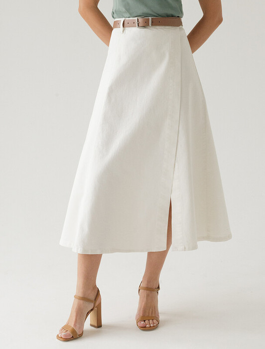 22.03 Vilatte Юбка на запАх из эластичного денима D56.112 белый