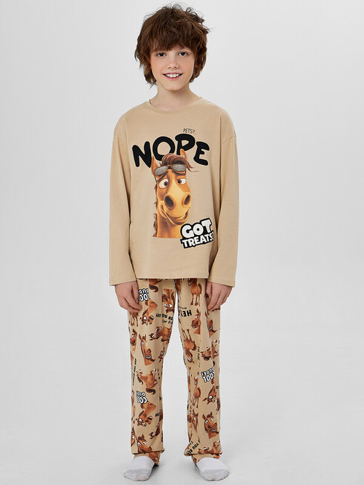Комплект для мальчиков состоит из лонгслива и брюк.