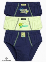 Трусы-слипы для мальчиков. Набор из 3-х трусов. Цвета: яблочный, тёмно-сний. Принт в инопланетной тематике, контрастные декоративные строчки на передней части изделия.