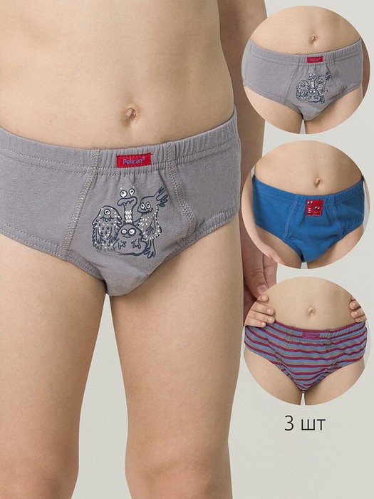 22.04 Pelican Трусы для мальчиков BULB3302(3) Джинс/красный/серый