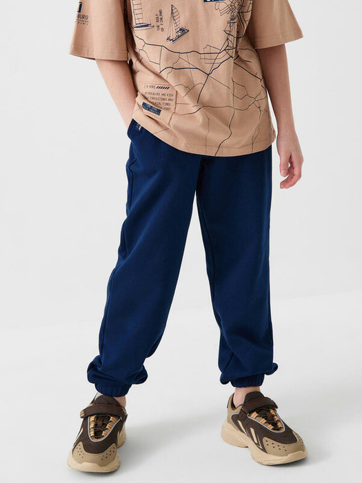 Брюки-джоггеры для мальчика подростка. Выполнены из хлопкового трикотажа футер без начеса. Модель свободного кроя со средней посадкой на талии. Пояс выполнен на резинке, дополнительно регулируется шнурком. По бокам — удобные карманы. В нижней части брючин предусмотрены манжеты на резинке для лучшей фиксации. Брюки украшены лейблом с принтом.