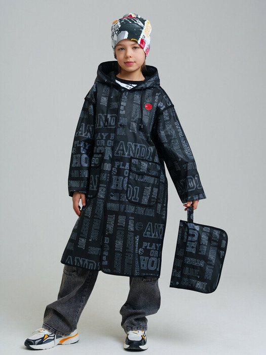 Плащ-дождевик для мальчика-подростка с принтом в коллекцию. Капюшон с утяжкой. Застежка на кнопки. Материал  ЭВА. Без подкладки. Модель имеет спереди два накладных кармана с клапаном. Добавлена петелька под капюшоном с внешней стороны, чтобы остальные вещи на вешалке не намокали. Сзади есть светоотражающая полоска. Идеально подходит для парного образа папа-сын, так как такая модель есть в размерах для взрослых. В комплекте идет непромокаемая сумочка.