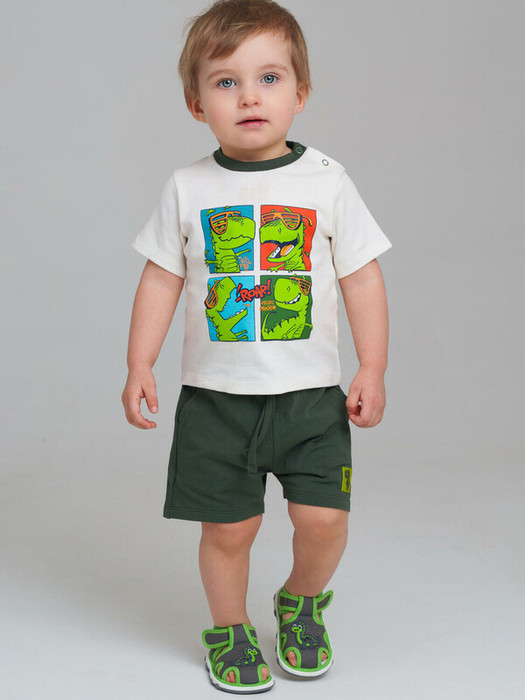 Сандалии детские для мальчика. При ходьбе сандалии издают писк - для ребенка это интересный игровой элемент, а мамы будут всегда слышать своего ребенка на детской площадке. При желании пищалку можно вынуть. Сандалии с закрытой пяткой и удобным ремнем с липучкой, который позволяет ребенку обуваться самостоятельно. Модель выполнена из экологичного и гипоаллергенного хлопкового материала, который идеально подходит для маленьких детей. Модель декорирована веселыми динозавриками. Двухсоставная подошва из ТПР очень гибкая, легкая и нескользкая. Особая технология сборки обуви добавляет ей дополнительный комфорт.