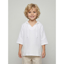 Сорочка для мальчика из смесового хлопка полуприлегающего силуэта. На спинке - кокетка. Воротник отложной со стойкой. Застёжка по центру переда на планку с пугавицами. Рукава рубашечные со шлицами и манжетами.