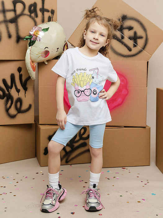 Футболка для девочки с коротким рукавом белая из натурального хлопка. Важный элемент гардероба, особенно в летний период и для повседневного ношения дома или в детском саду. Детская футболка  с принтом изготовлена из 100% хлопка, что обеспечивает комфорт и безопасность для кожи.Характеристики:Материал: 100% хлопокПроизводитель: batik