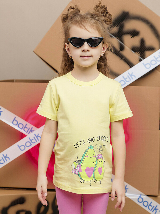 Футболка для девочки с коротким рукавом в желтом цвете с принтом из натурального хлопка. Важный элемент гардероба, особенно в летний период и для повседневного ношения. Базовая футболка на каждый день из 100% хлопка, что обеспечивает комфорт и безопасность для кожи.Характеристики:Ткань: 100% хлопокПроизводитель: batik