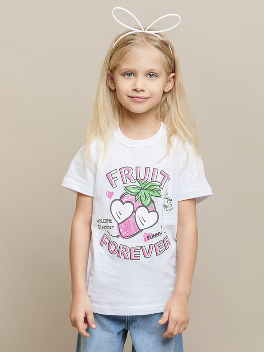 Футболка с коротким рукавом для девочки в белой расцветке с принтом в виде клубники. Повседневная детская футболка для детей от 2 до 8 лет идеально подходит для похода в садик, школу, для занятий физкультурой и спорта, а также в качестве универсальной домашней или пляжной одежды. Футболка для девочек изготовлена из натурального хлопка, обеспечивает комфорт и удобство.Характеристики:Материал: 100% хлопокПроизводитель: batik