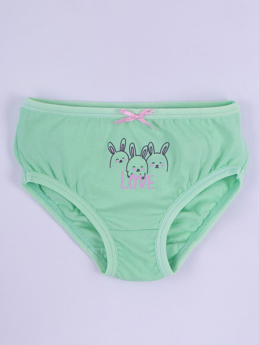 Трусы для девочки в мятной расцветке с рисунком и бантиком. Трусы слипы для девочек выполнены из хлопка.