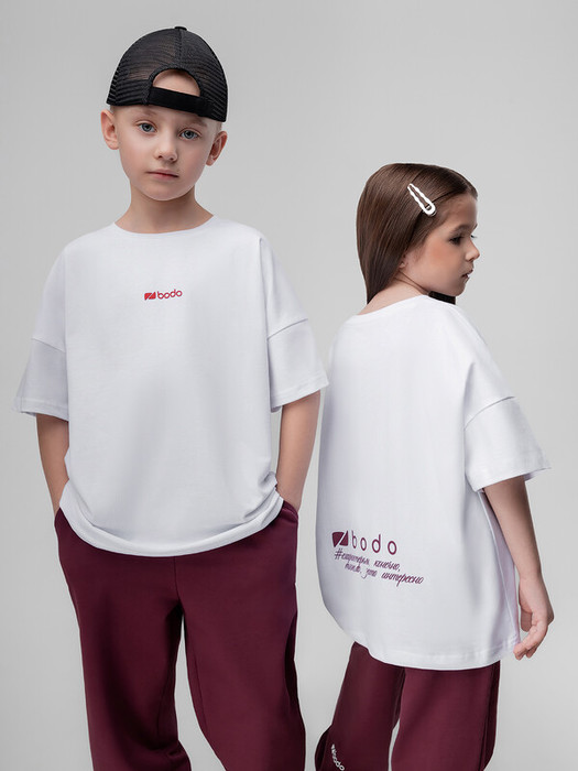 Совместные покупки Тюмень Детская одежда Футболки, майки — 24.03 Bodo Футболка "С характером, конечно..." 4-483MU белый (бордовый