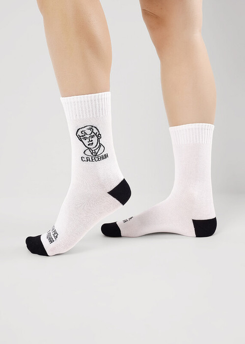Носки для мальчика и девочки с выделенным мысом и пяткой, с изображением С.А.Есенина и надписью Гой ты Русь моя родная
