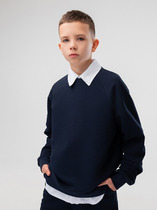 Лёгкий джемпер с длинными втачными рукавами. Сшит из однотонного трикотажа интерлок и украшен принтом. Рукава и низ изделия обработаны плоскими швами. Спереди жаккардовая нашивка.