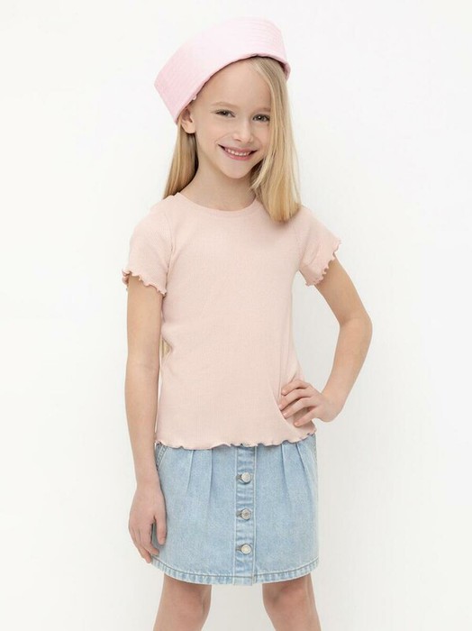 Футболка для девочки из эластичного трикотажа в рубчик. Изделие сохраняет цвет и форму после многократных стирок.