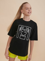 Модная футболка для девочек, выполненная из хлопковой трикотажной кулирки. Силуэт прямой. Перед и спинка без швов и рельефов. Рукава короткие, вырез классический – круглый, не глубокий. Стильная футболка с ярким дизайном!