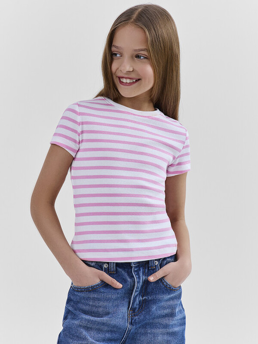 Футболка верхняя прилегающего силуэта из рибана. Перед и спинка цельнокроенные. Рукав втачной, короткий. Горловина круглой формы, обтачка из основного полотна. Низ изделия и рукавов обработан на 2-х игольной плоскошовной машинешвом в подгибку.