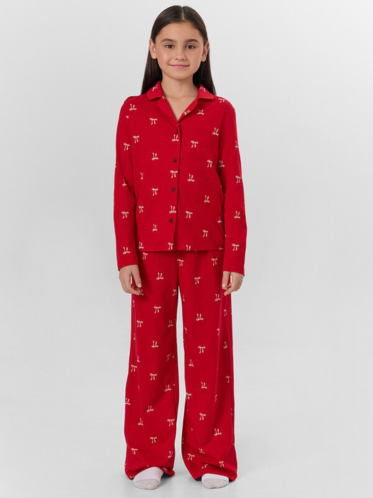 Подарите своему ребенку комфорт и очарование с домашним комплектом, созданным для приятного отдыха и активных домашних игр. В комплект входят рубашка и брюки, выполненные из мягкой хлопковой кулирки — натурального материала, который нежно заботится о коже и обеспечивает отличную воздухопроницаемость. Рубашка прямого силуэта с отложным воротником выглядит аккуратно и стильно. Спущенное плечо и длинные рукава добавляют свободы движений, а центральная застежка на пуговицы делает модель удобной и практичной. Брюки слегка расширены к низу, что придает образу легкость и современность. Эластичный пояс мягко фиксирует посадку, не сдавливая животик, а низ брюк аккуратно застрочен швом в подгибку. Этот комплект — идеальный выбор для дома: он сочетает в себе комфорт, качество и милый стиль. Подходит для отдыха, игр и уютных вечеров.