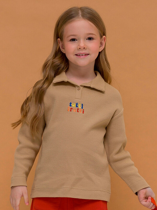 Лонгслив-поло для девочек. Приятный на ощупь, с большим содержанием хлопка в составе, гигроскопичный и простой в уходе вафельный трикотаж. Свободный силуэт со спущенным плечом для комфорта движений. Воротник сделан из основной ткани, планка у горловины на пуговице. Цветная вышивка спереди – фишка модели. Широкая подгибка рукавов и низа – актуальный тренд на увеличенные отделочные детали кроя. Лонгслив подходит на каждый день, для активного образа жизни, идеален для пляжного сезона.